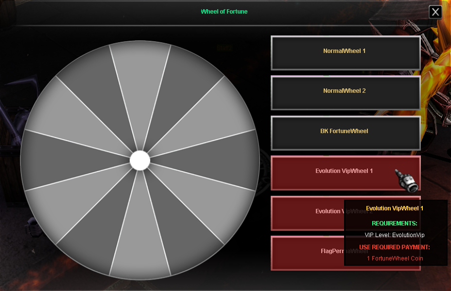 Do you want to test your luck? In the Fortune Wheel you can get everything from jewels to exclusive items. By hovering over each option, you will see the requirements and the spin cost.Exclusivity: Some special wheels are visible and usable only for users with EvolutionVip rank.