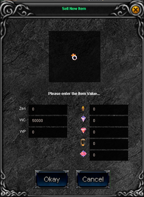 You can sell your objects in exchange for: Zen, WCoin, WCoin(P) or Jewels.