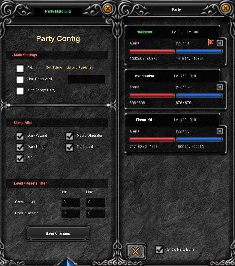 You must check at least one class for the party to be visible. You can filter so only the classes your team needs (e.g., only Elves) can see it.-Level/Resets Filter: