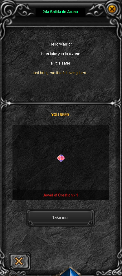 This NPC is a key strategic ally for all players, especially when the main Arena exit is blocked by other users or PVP situations.-Function: It instantly teleports you to the second exit of the Arena map.